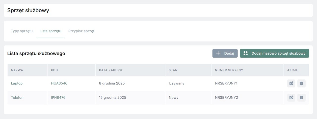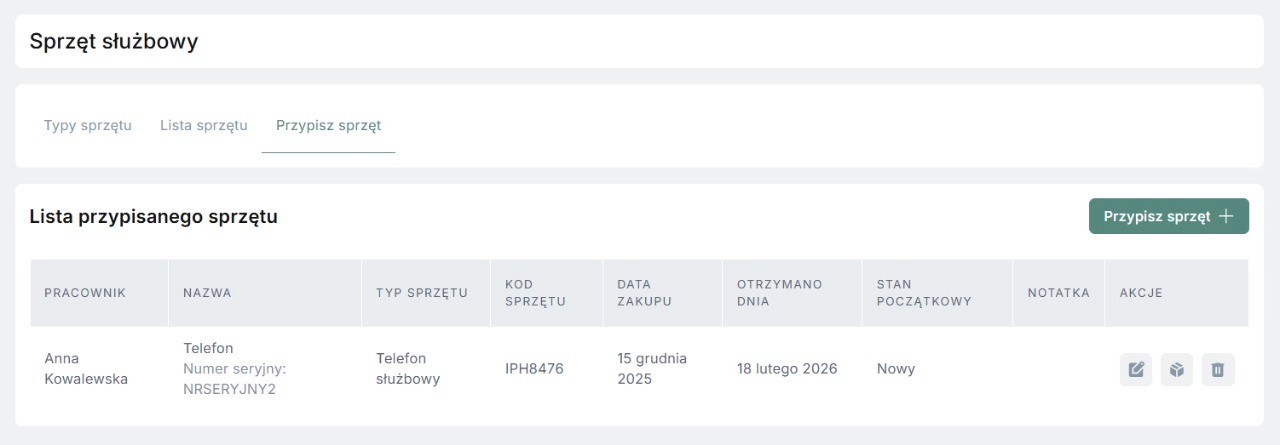 Czy pracownikowi mogę dodać trzy sprzęty służbowe?